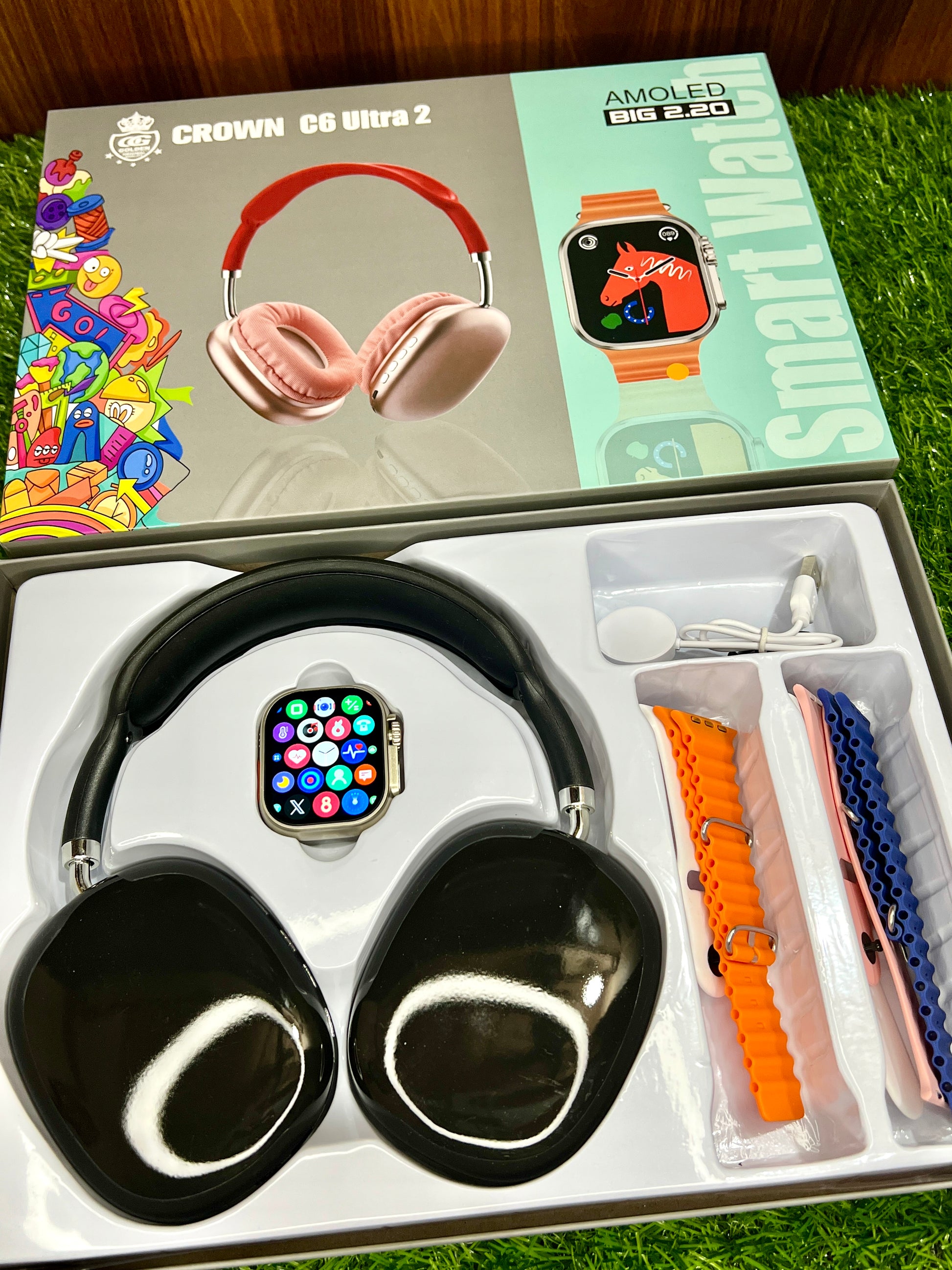 C6 Ultra 3 Smart Watch ⌚️ with Headphones 🎧 Box Pack with Charger 🔌 (Discount On Quantity) Best Gift For Him/Her