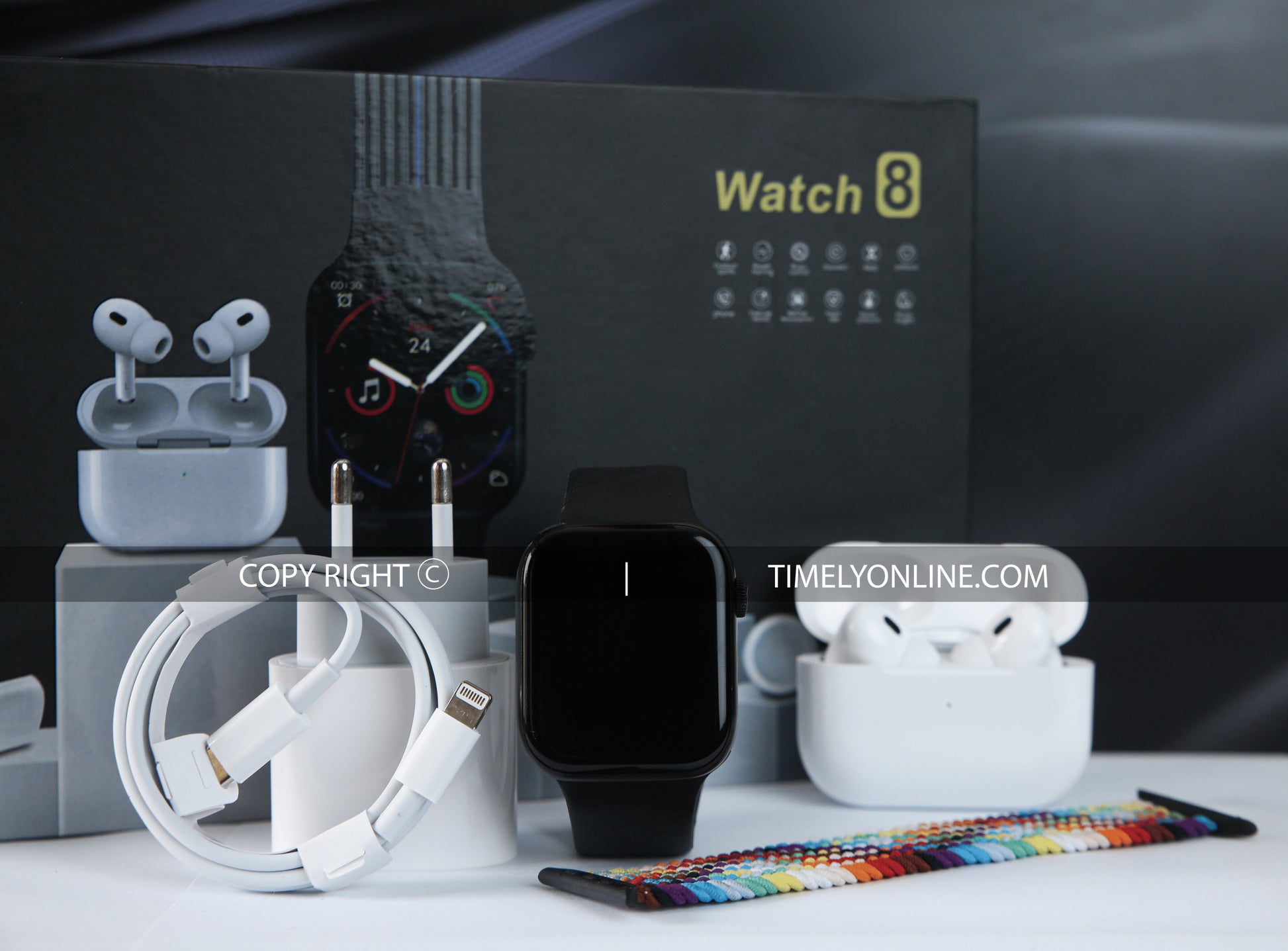 Introducing the X6 Smartwatch, a unique combination of style and functionality that brings together the best features from the Series 8, Watch 8, and AirPods Pro 2. This smartwatch boasts a stretchable strap for ultimate comfort, a silicone strap for versatility, and even supports wireless charging for both your watch and AirPods or phone.